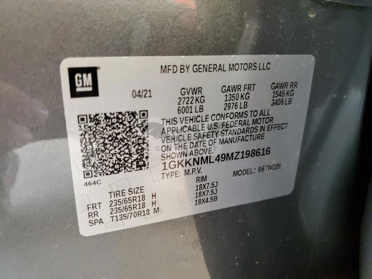 • VIN: 1GKKNML49MZ198616