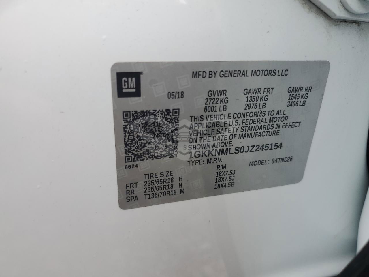 • VIN: 1GKKNMLS0JZ245154