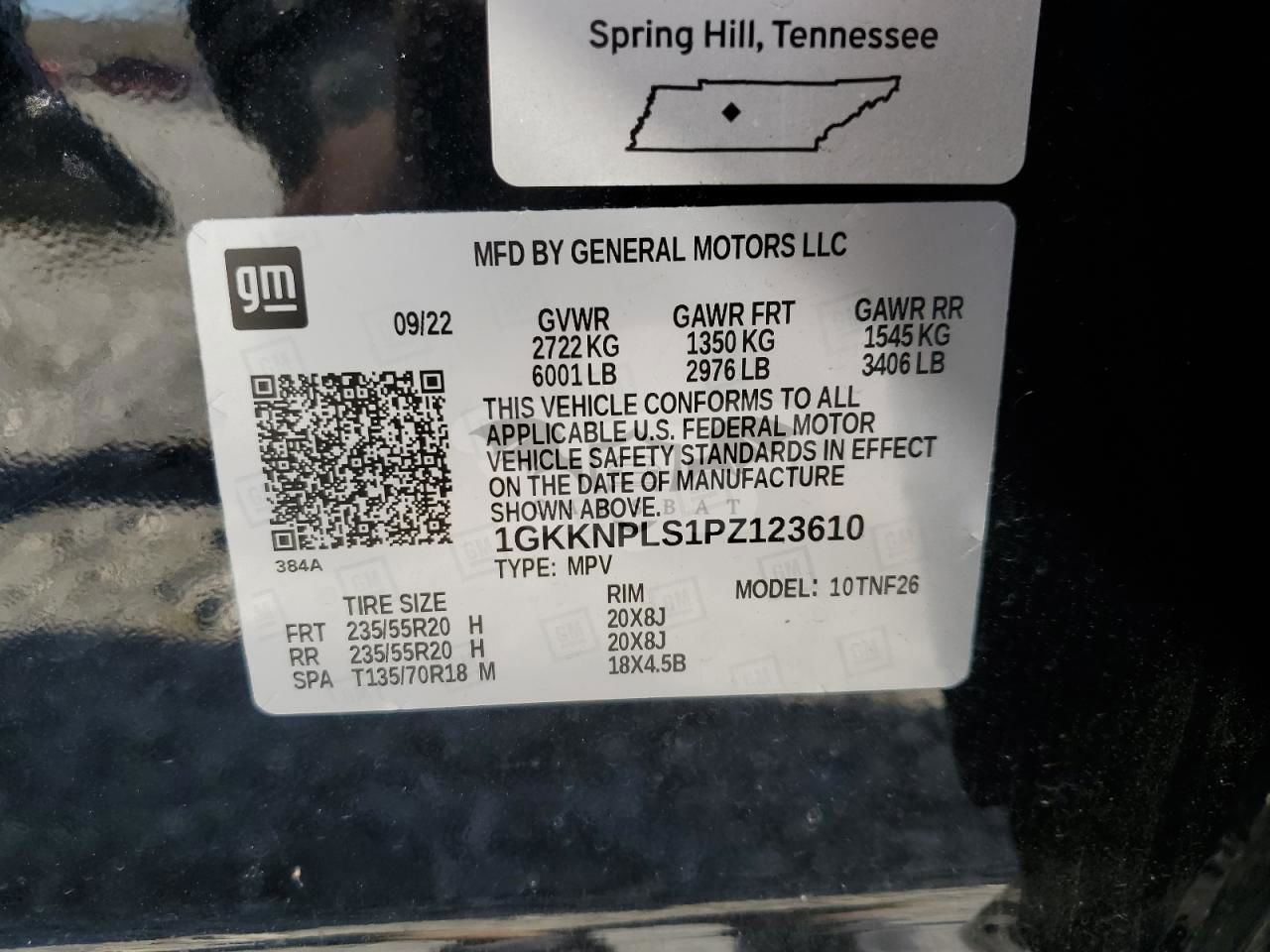 • VIN: 1GKKNPLS1PZ123610