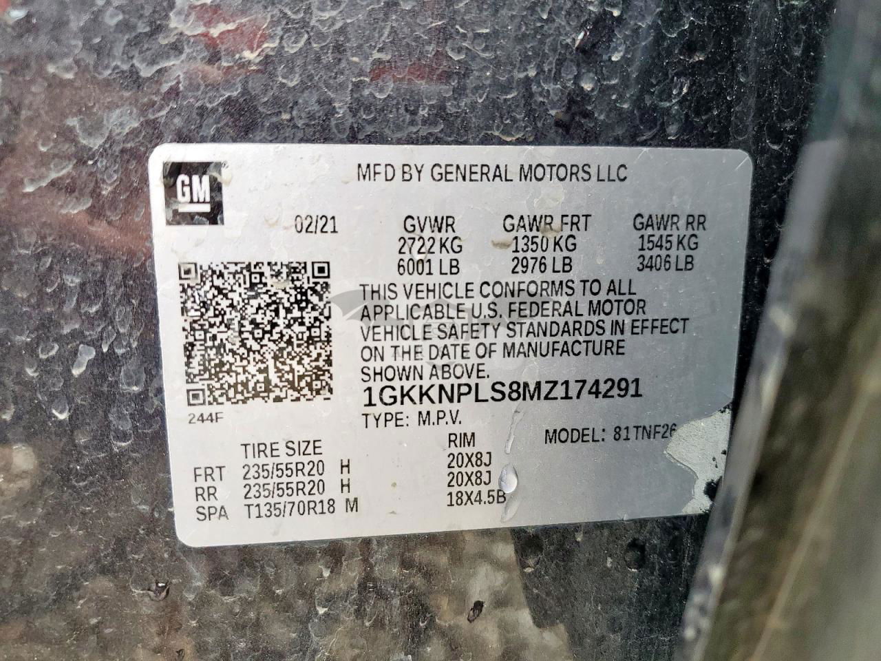• VIN: 1GKKNPLS8MZ174291