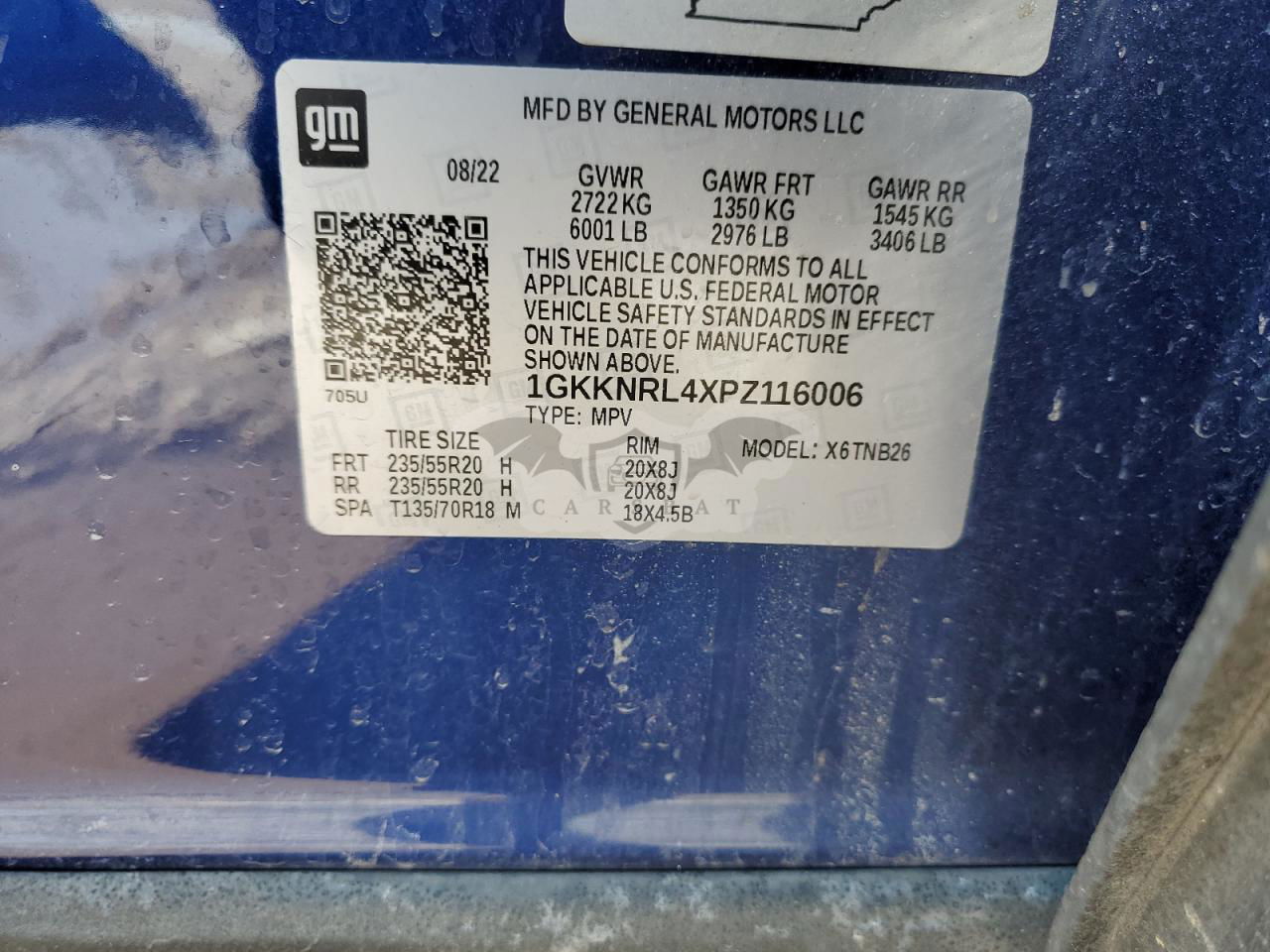 • VIN: 1GKKNRL4XPZ116006