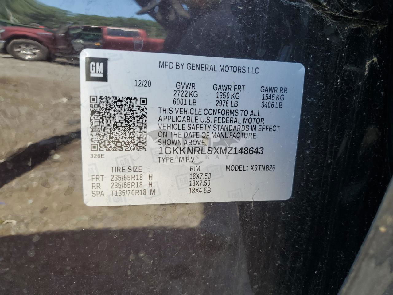 • VIN: 1GKKNRLSXMZ148643