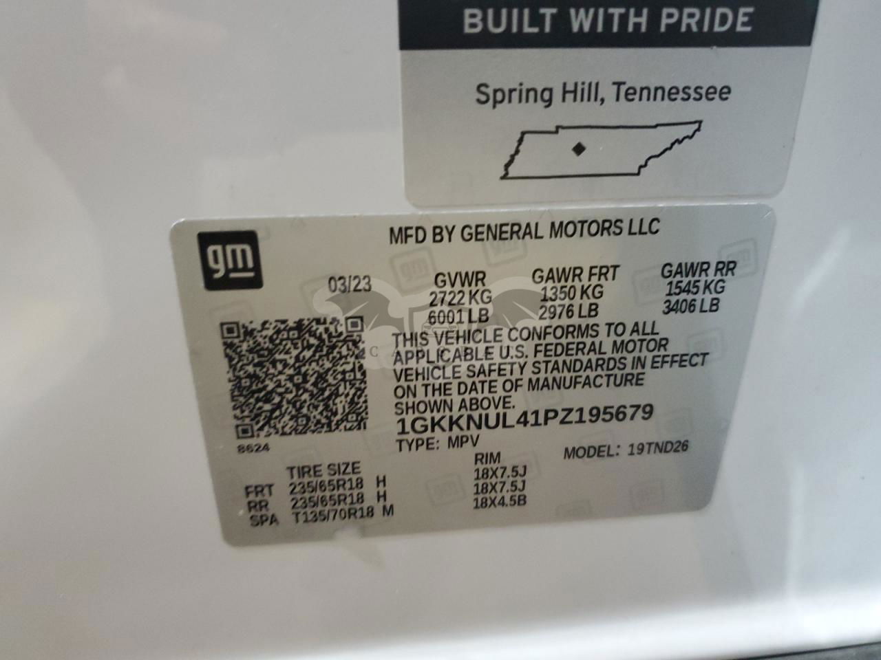 • VIN: 1GKKNUL41PZ195679