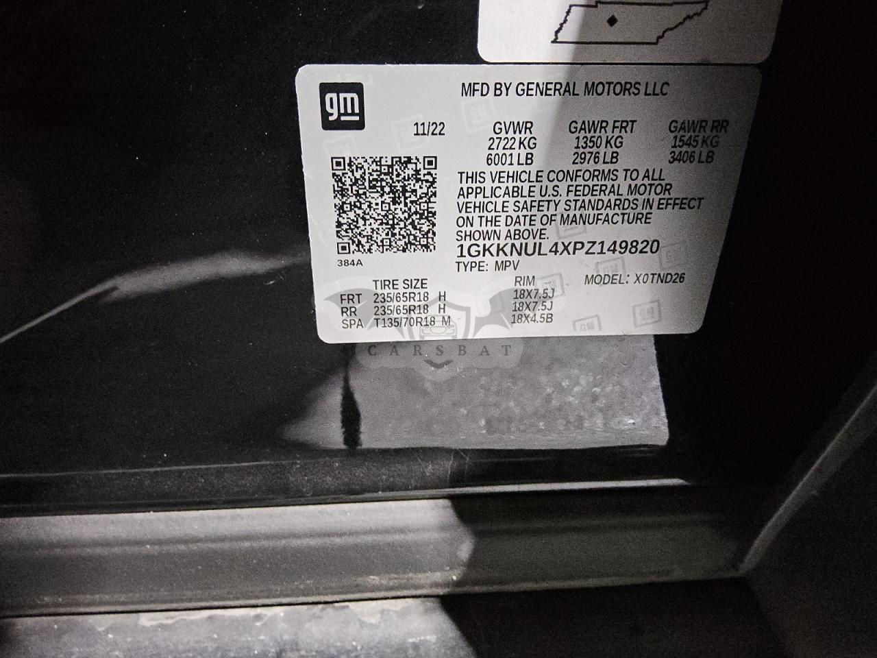 • VIN: 1GKKNUL4XPZ149820