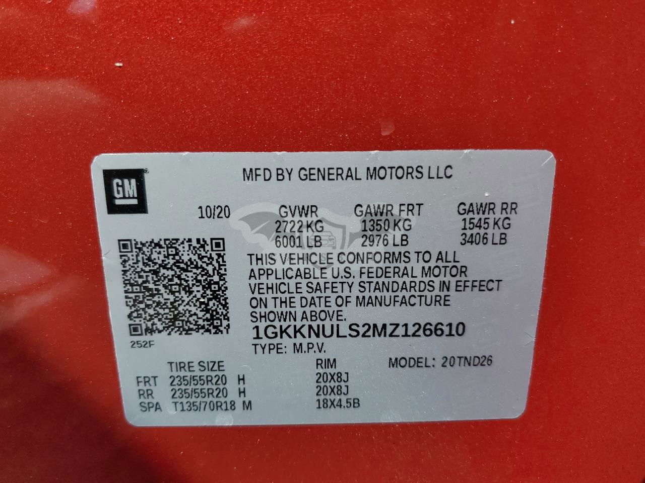 • VIN: 1GKKNULS2MZ126610