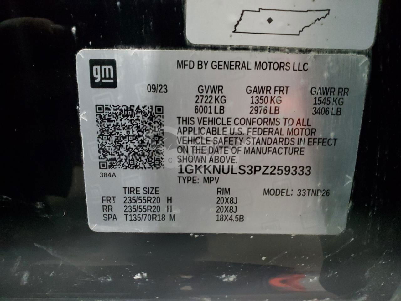 • VIN: 1GKKNULS3PZ259333