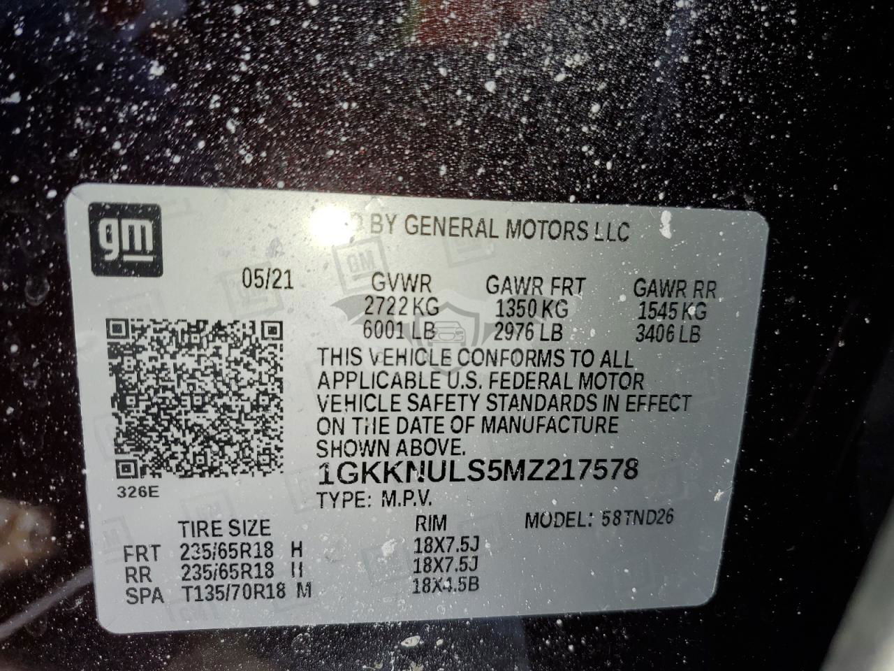 • VIN: 1GKKNULS5MZ217578