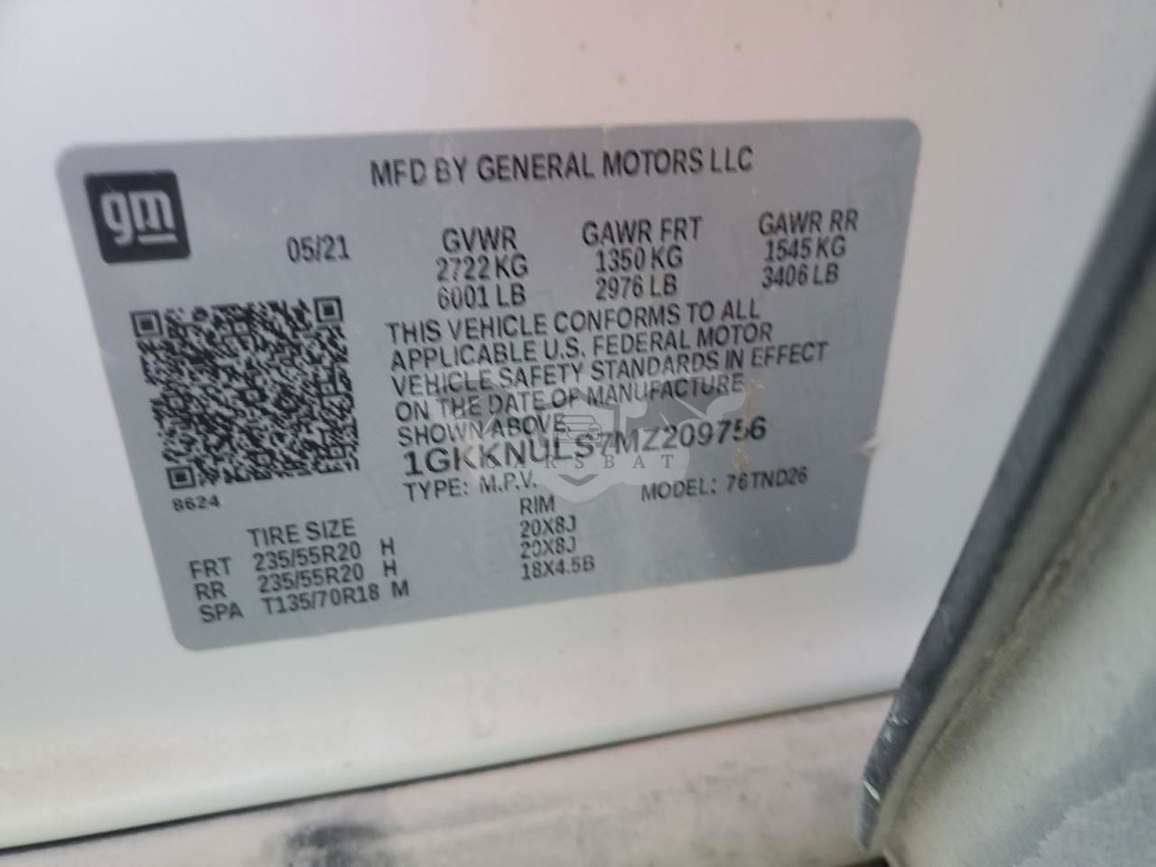 • VIN: 1GKKNULS7MZ209756