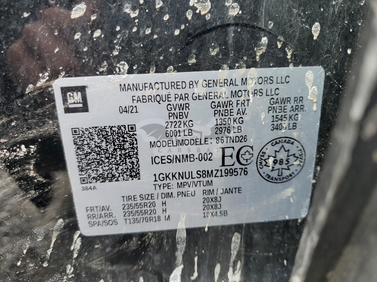 • VIN: 1GKKNULS8MZ199576
