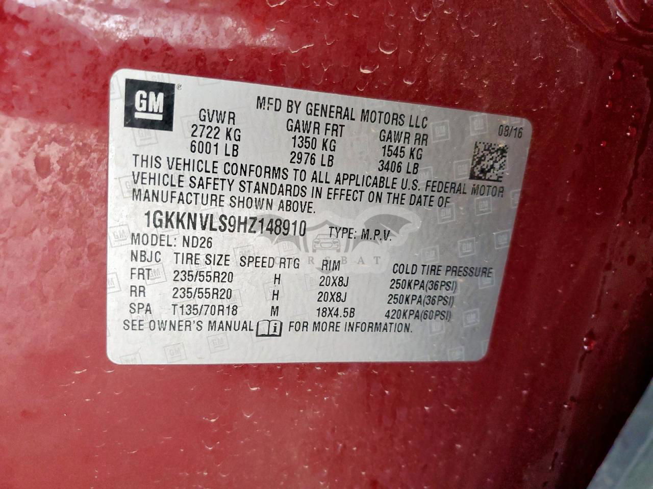 • VIN: 1GKKNVLS9HZ148910