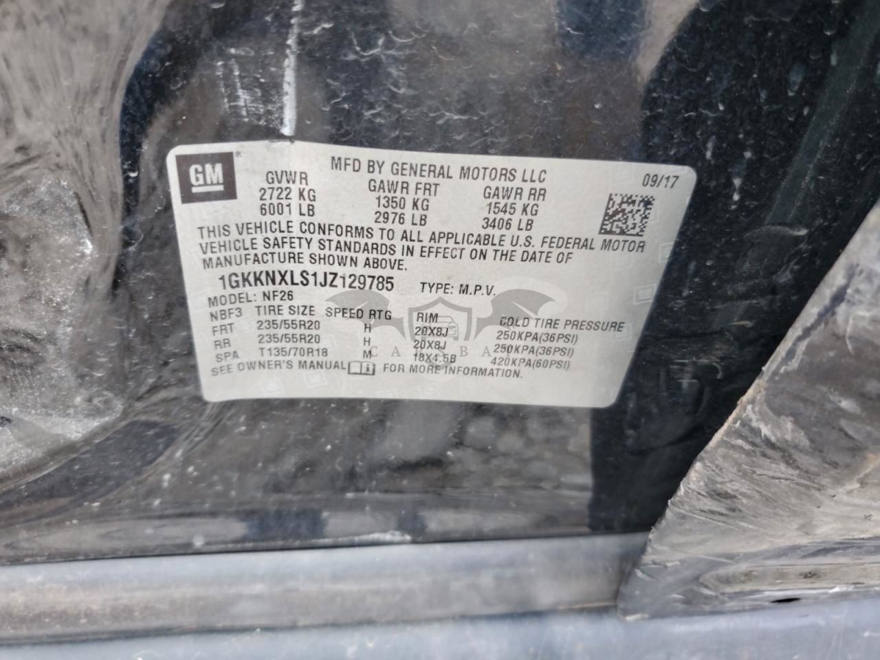• VIN: 1GKKNXLS1JZ129785