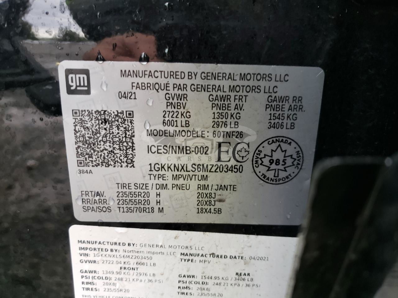• VIN: 1GKKNXLS6MZ203450