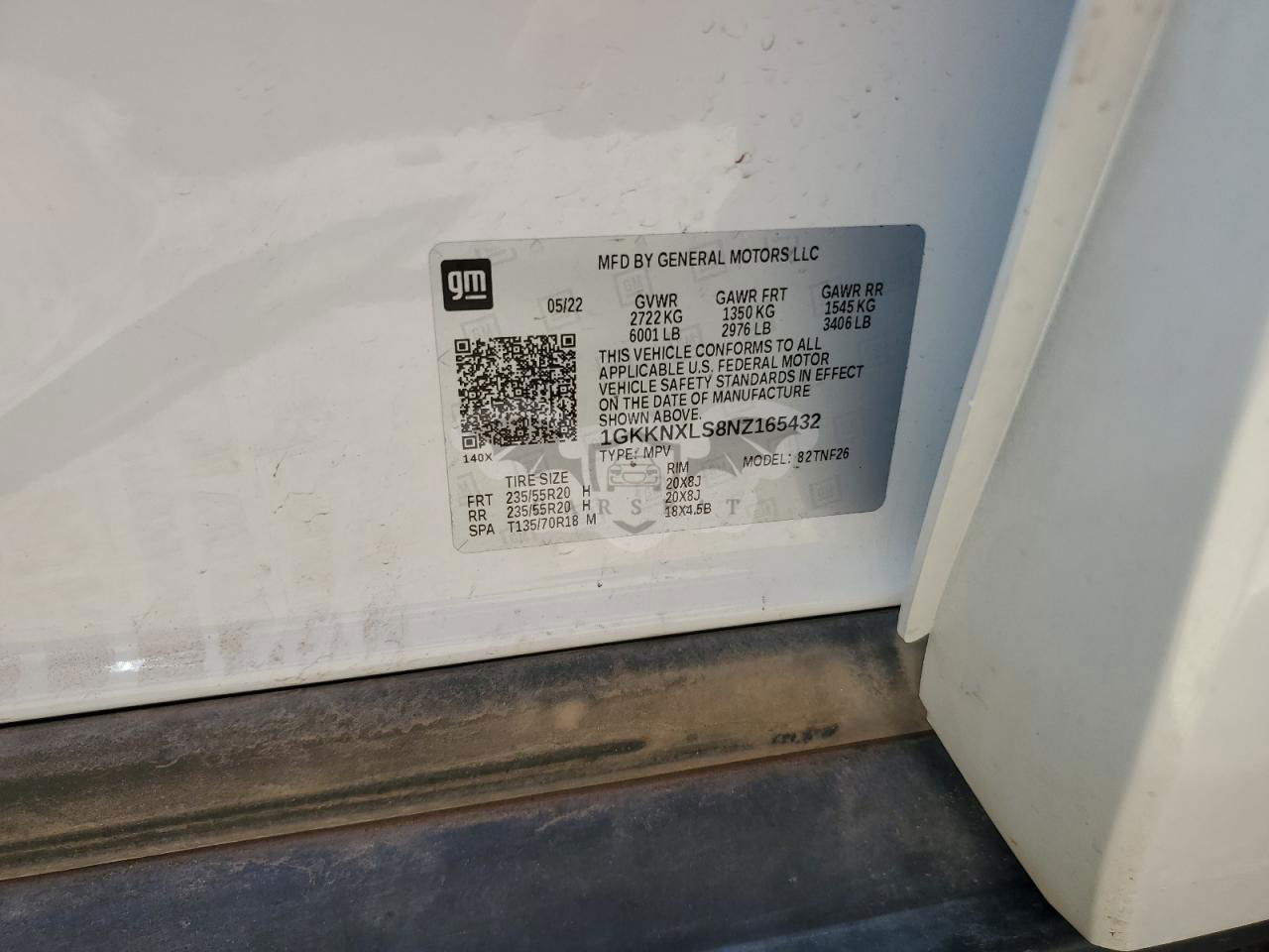 • VIN: 1GKKNXLS8NZ165432