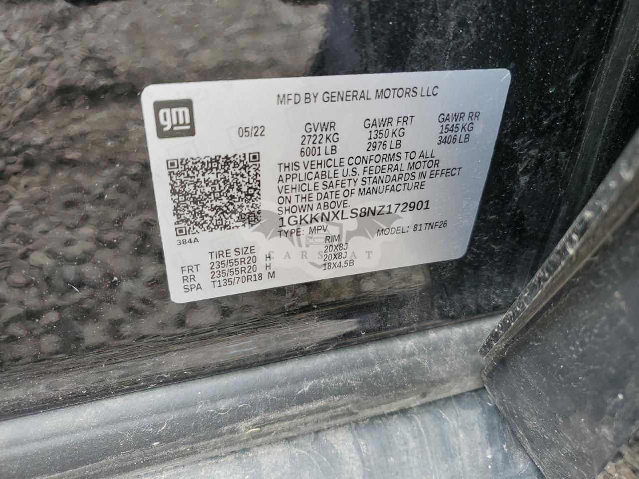 • VIN: 1GKKNXLS8NZ172901
