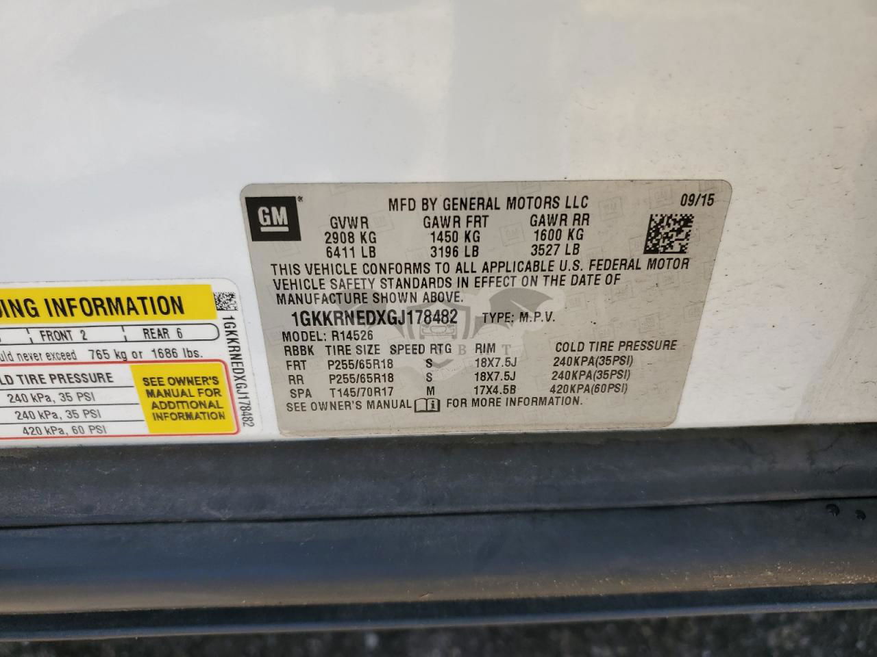 • VIN: 1GKKRNEDXGJ178482