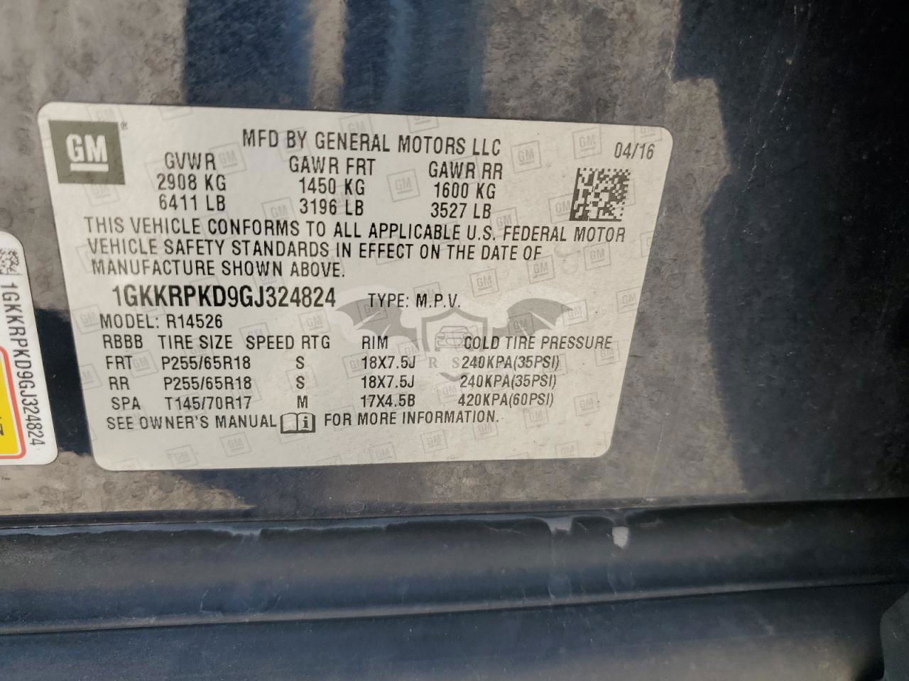 • VIN: 1GKKRPKD9GJ324824