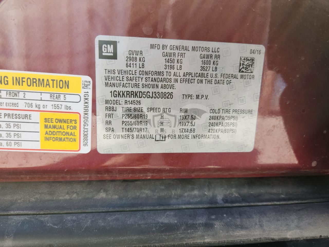 • VIN: 1GKKRRKD5GJ330826