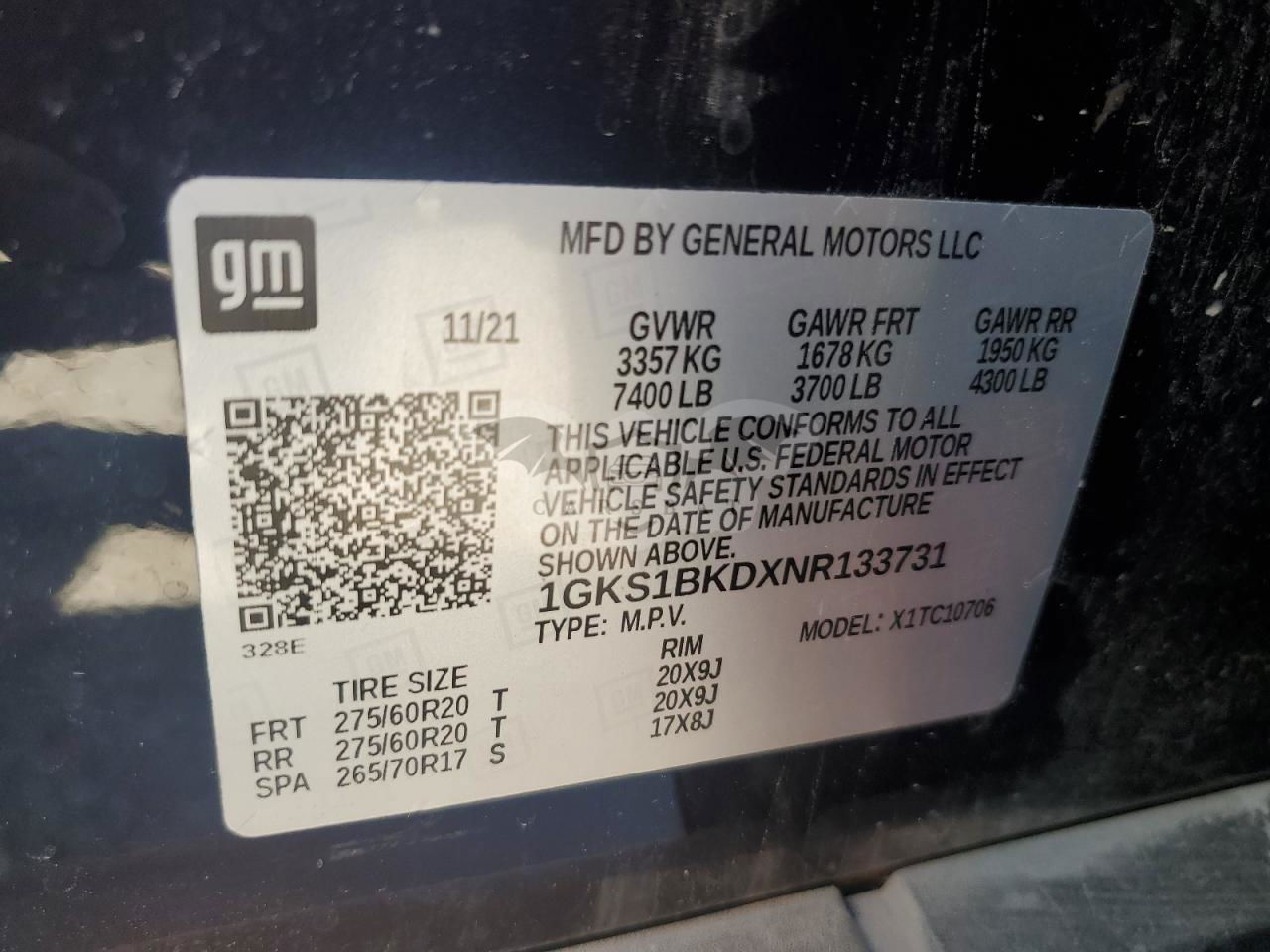 • VIN: 1GKS1BKDXNR133731