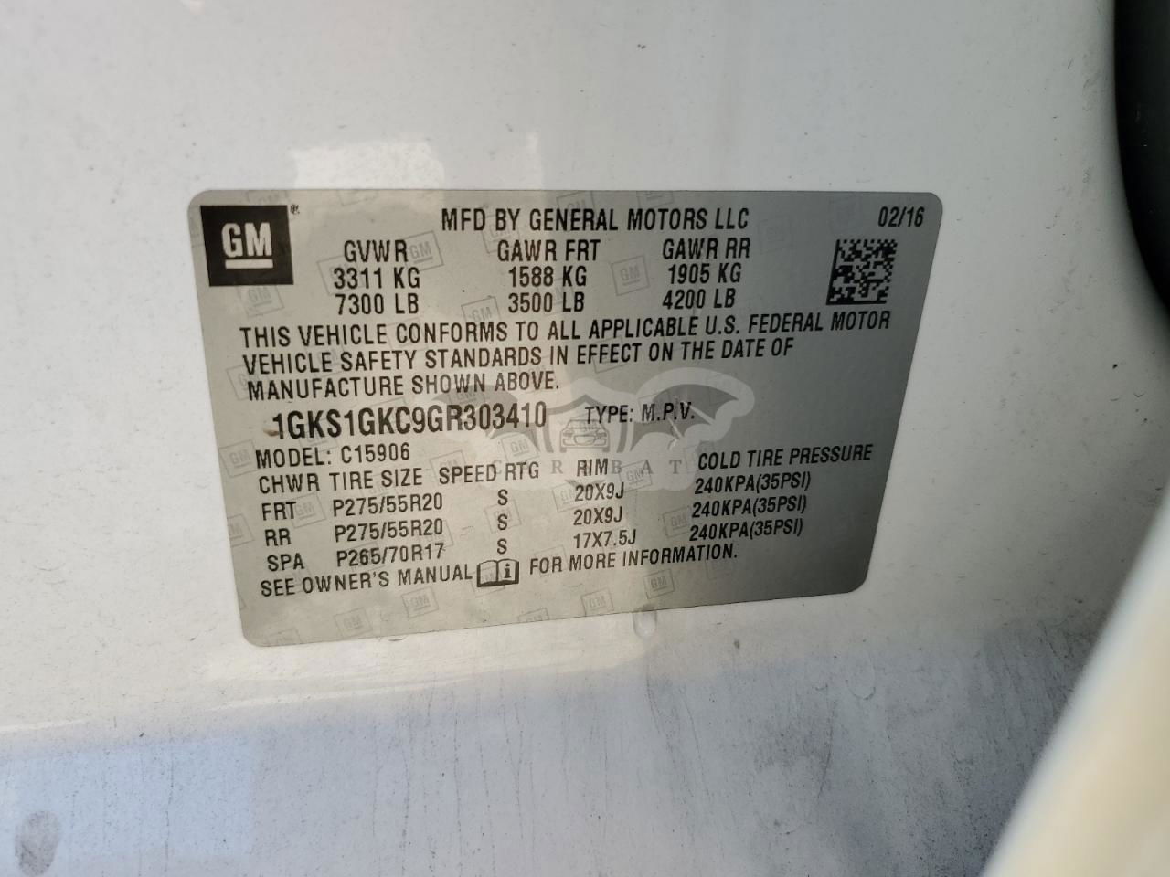 • VIN: 1GKS1GKC9GR303410