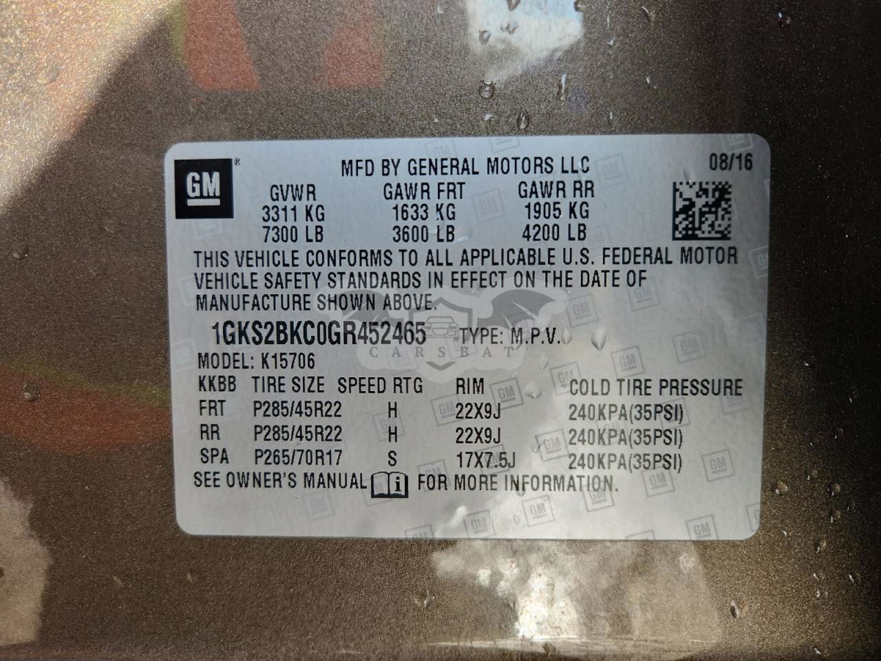 • VIN: 1GKS2BKC0GR452465
