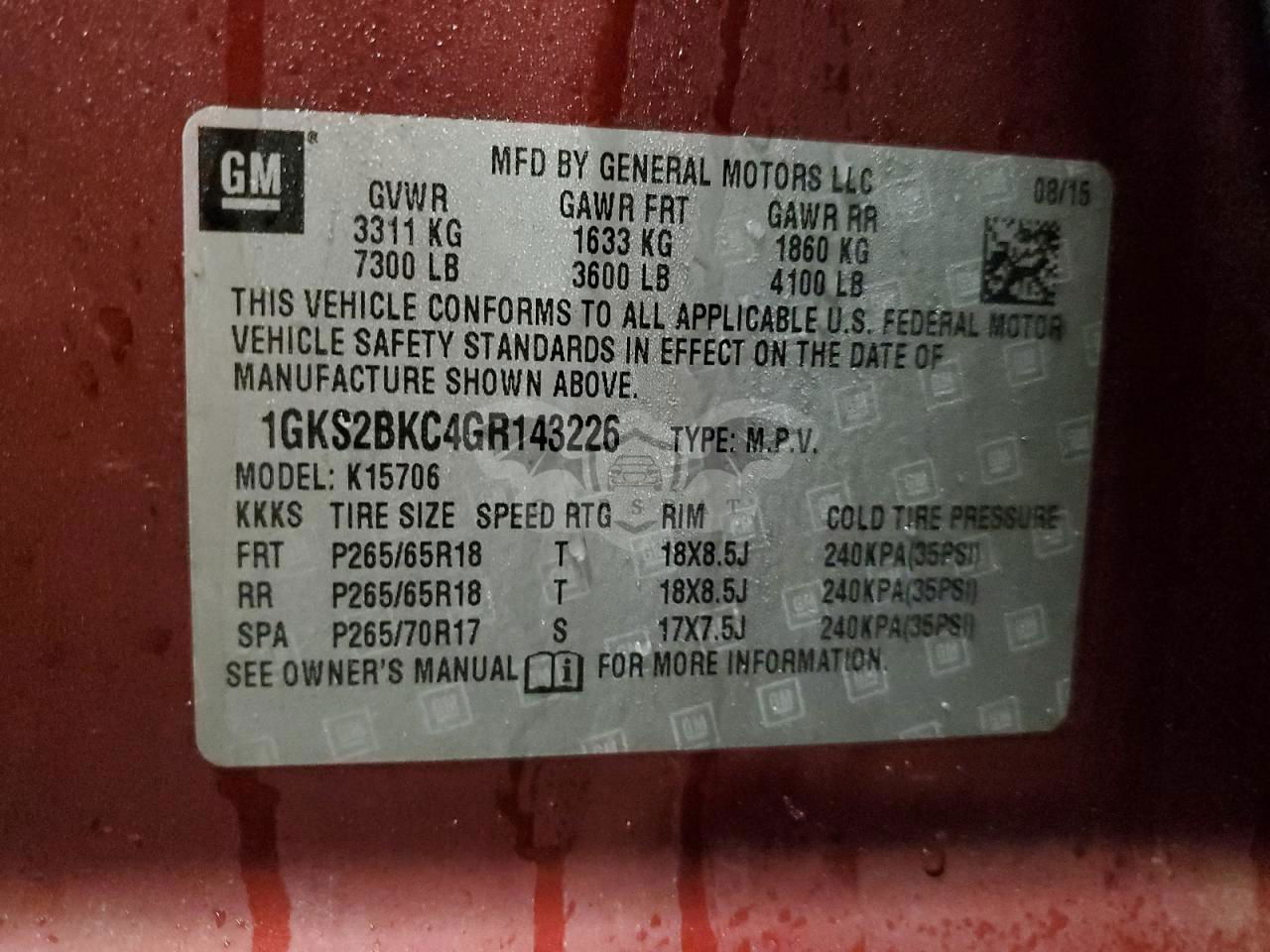 • VIN: 1GKS2BKC4GR143226