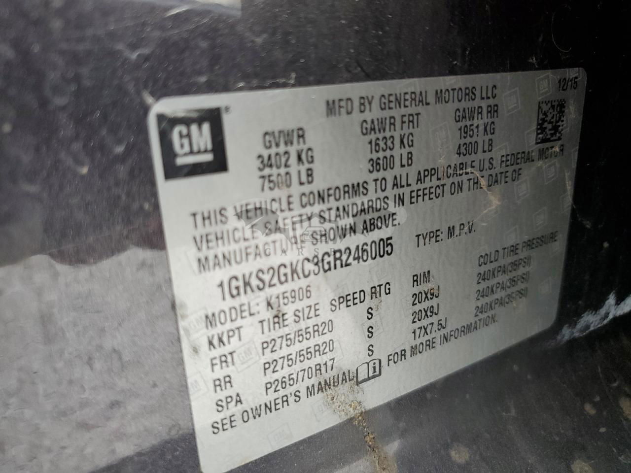 • VIN: 1GKS2GKC3GR246005