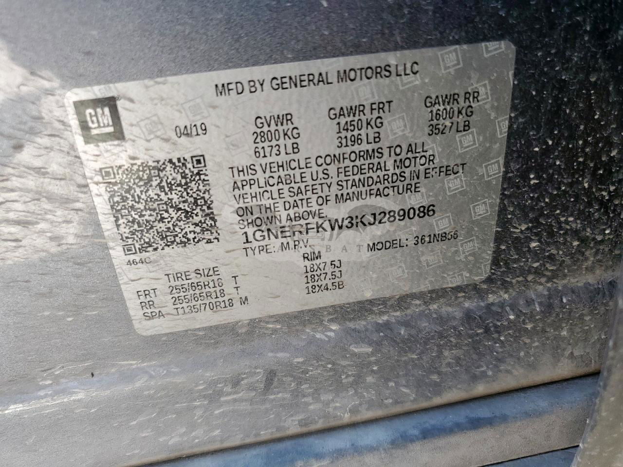 • VIN: 1GNERFKW3KJ289086