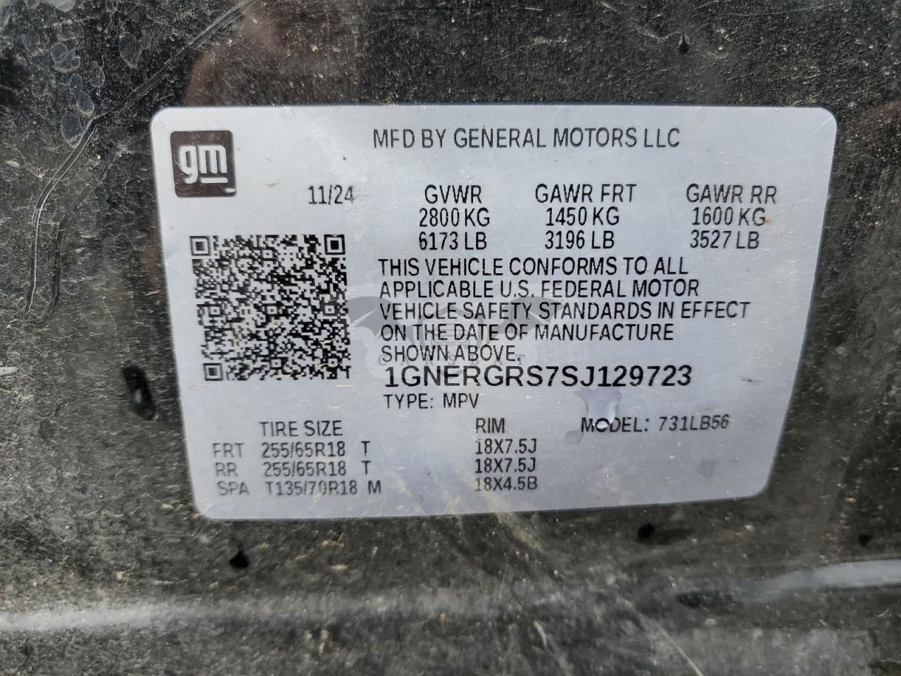 • VIN: 1GNERGRS7SJ129723