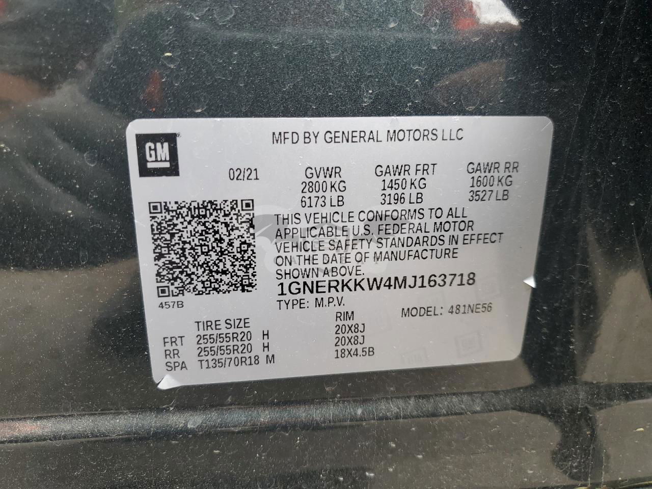 • VIN: 1GNERKKW4MJ163718
