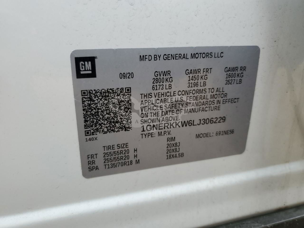 • VIN: 1GNERKKW6LJ306229