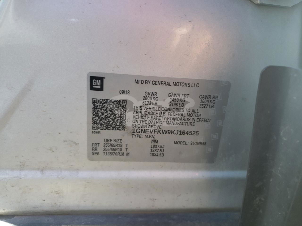 • VIN: 1GNEVFKW9KJ164525