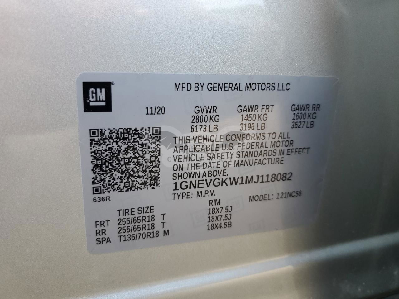 • VIN: 1GNEVGKW1MJ118082
