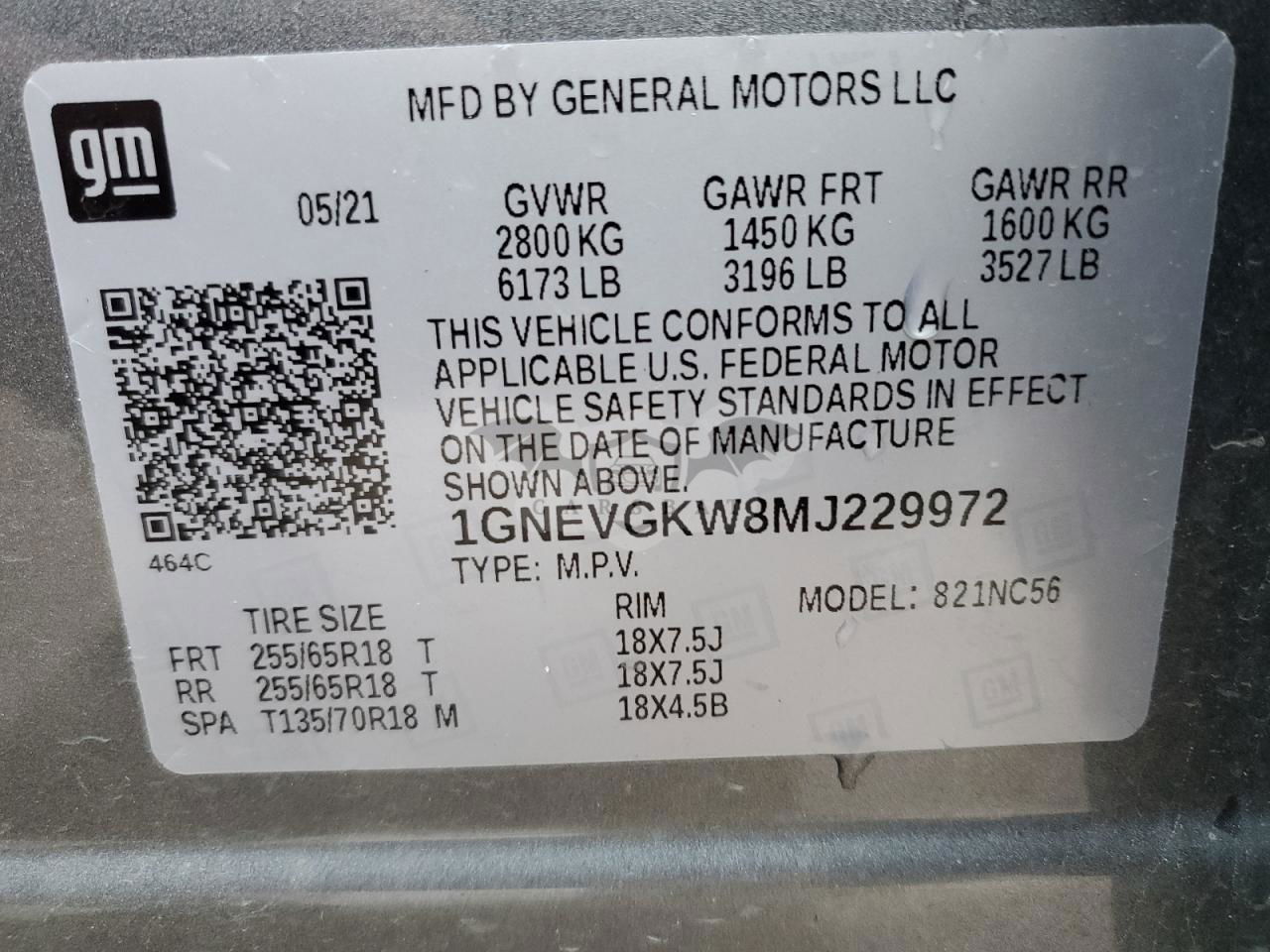 • VIN: 1GNEVGKW8MJ229972