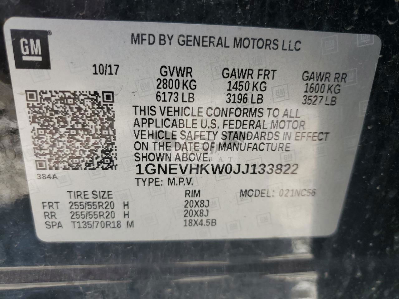 • VIN: 1GNEVHKW0JJ133822