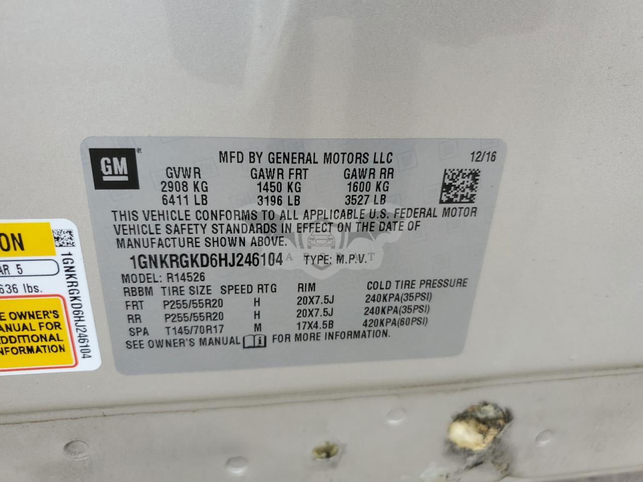 • VIN: 1GNKRGKD6HJ246104