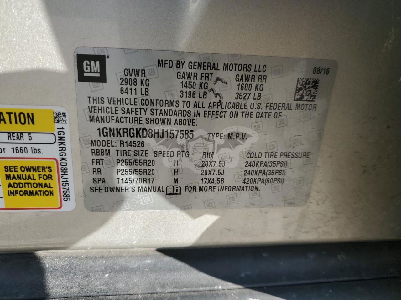 • VIN: 1GNKRGKD8HJ157585