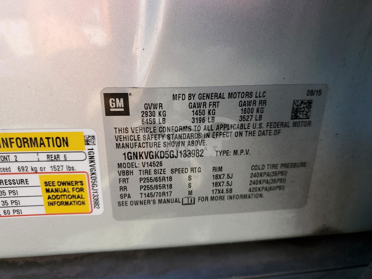 • VIN: 1GNKVGKD5GJ133982