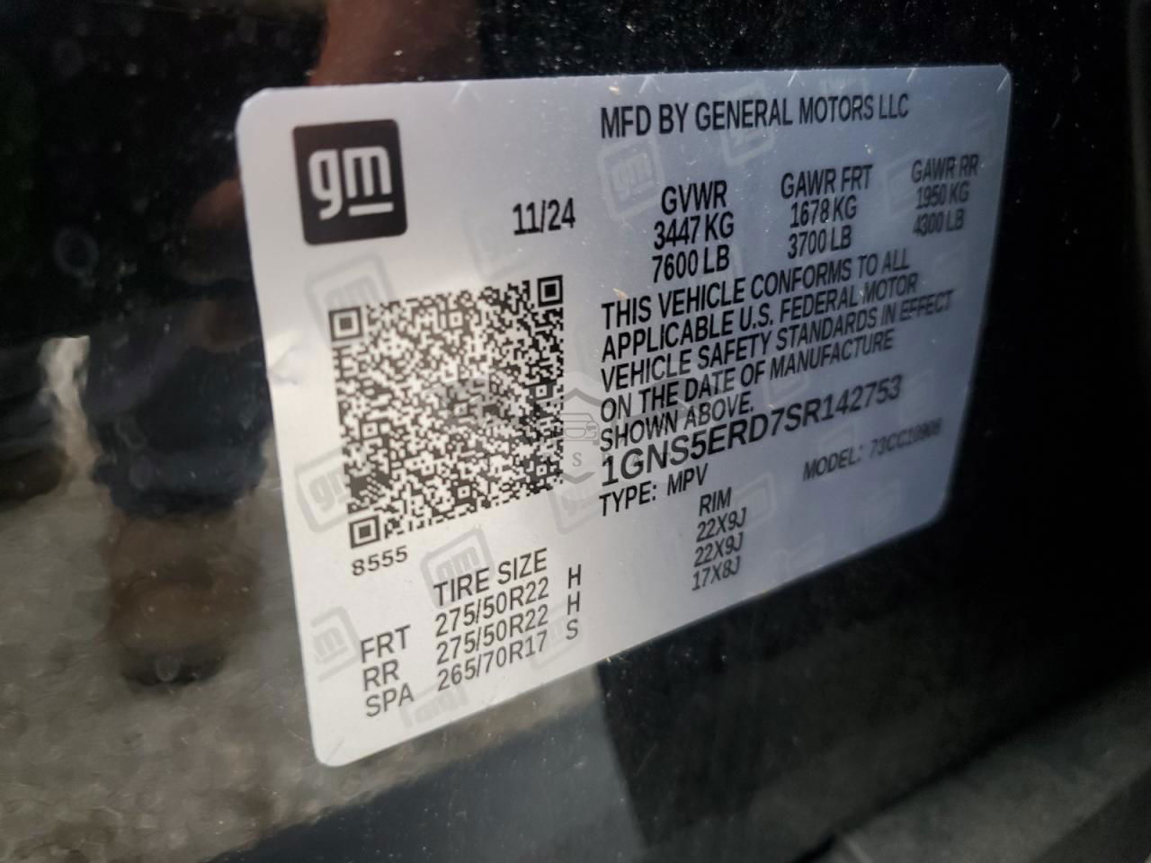 • VIN: 1GNS5ERD7SR142753