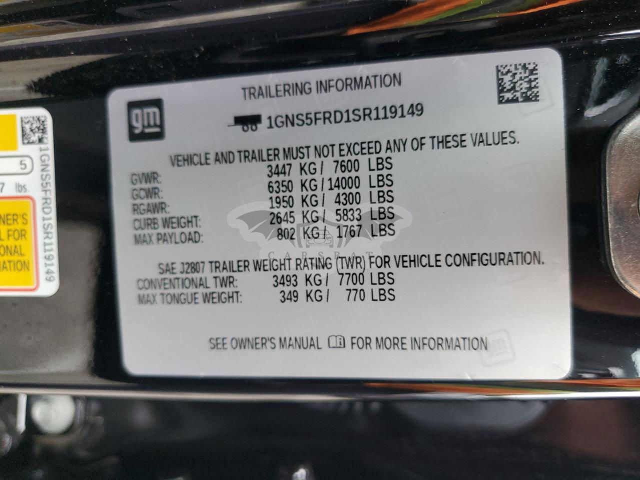 • VIN: 1GNS5FRD1SR119149