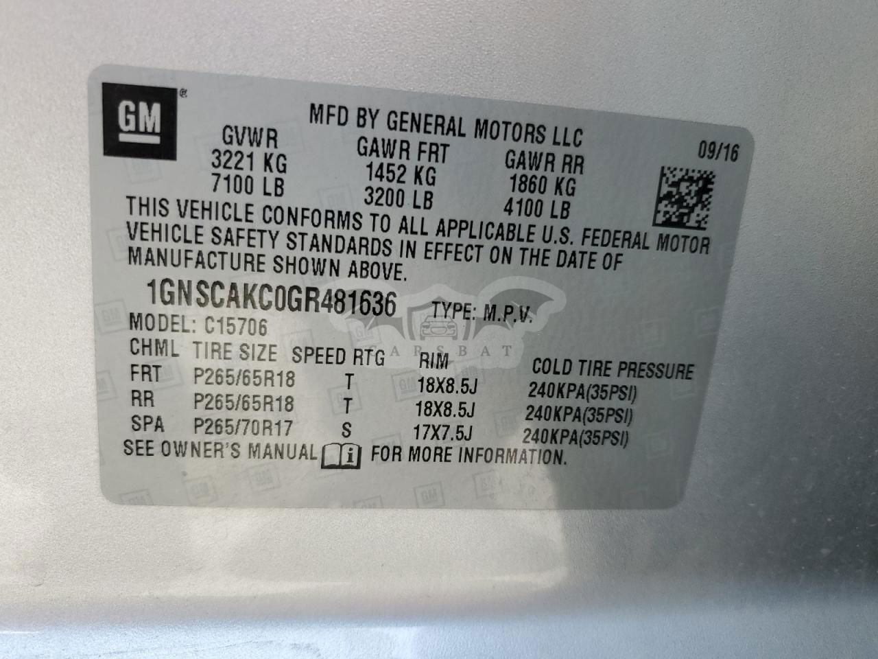• VIN: 1GNSCAKC0GR481636