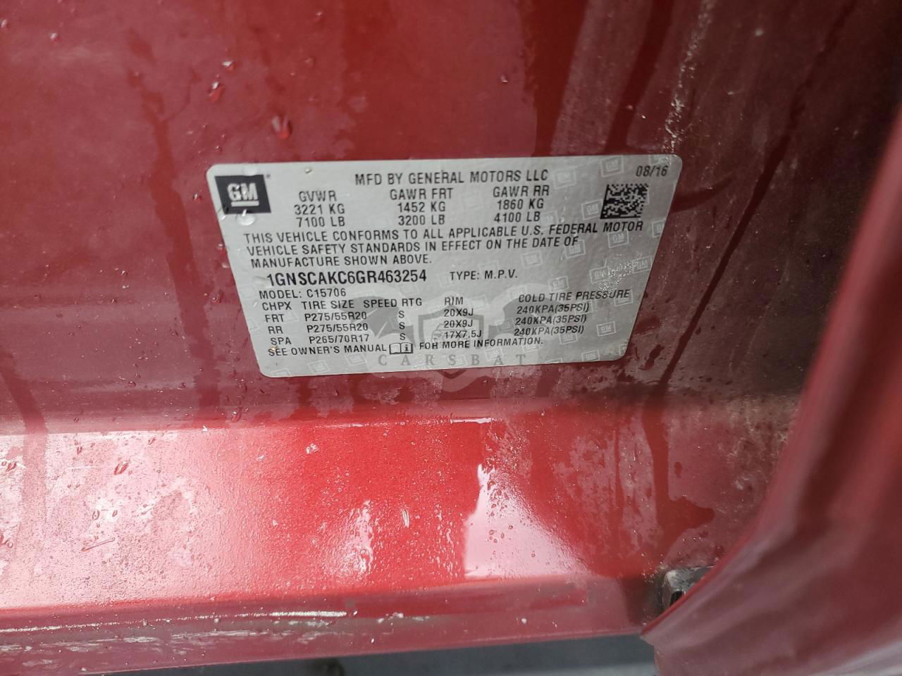 • VIN: 1GNSCAKC6GR463254