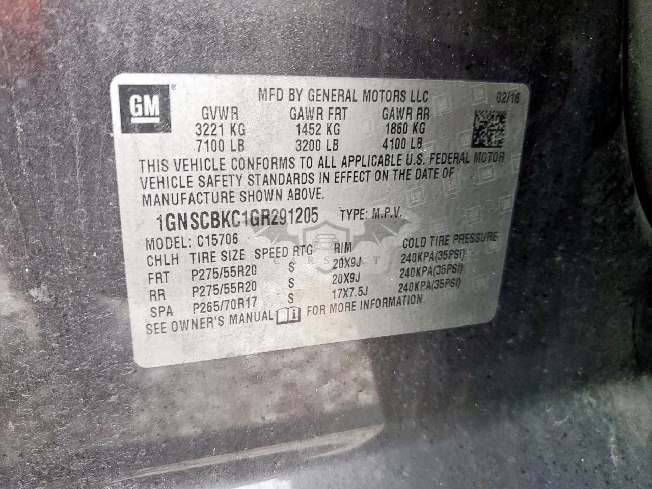 • VIN: 1GNSCBKC1GR291205