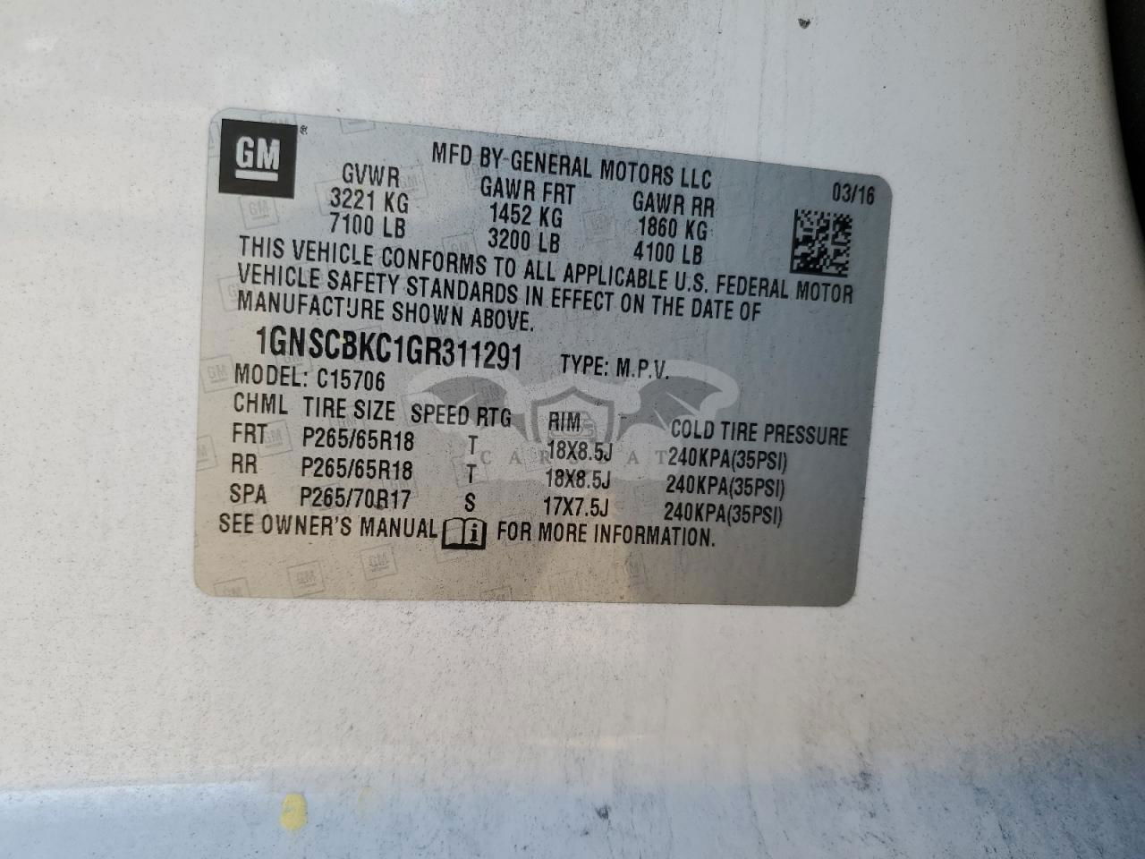 • VIN: 1GNSCBKC1GR311291