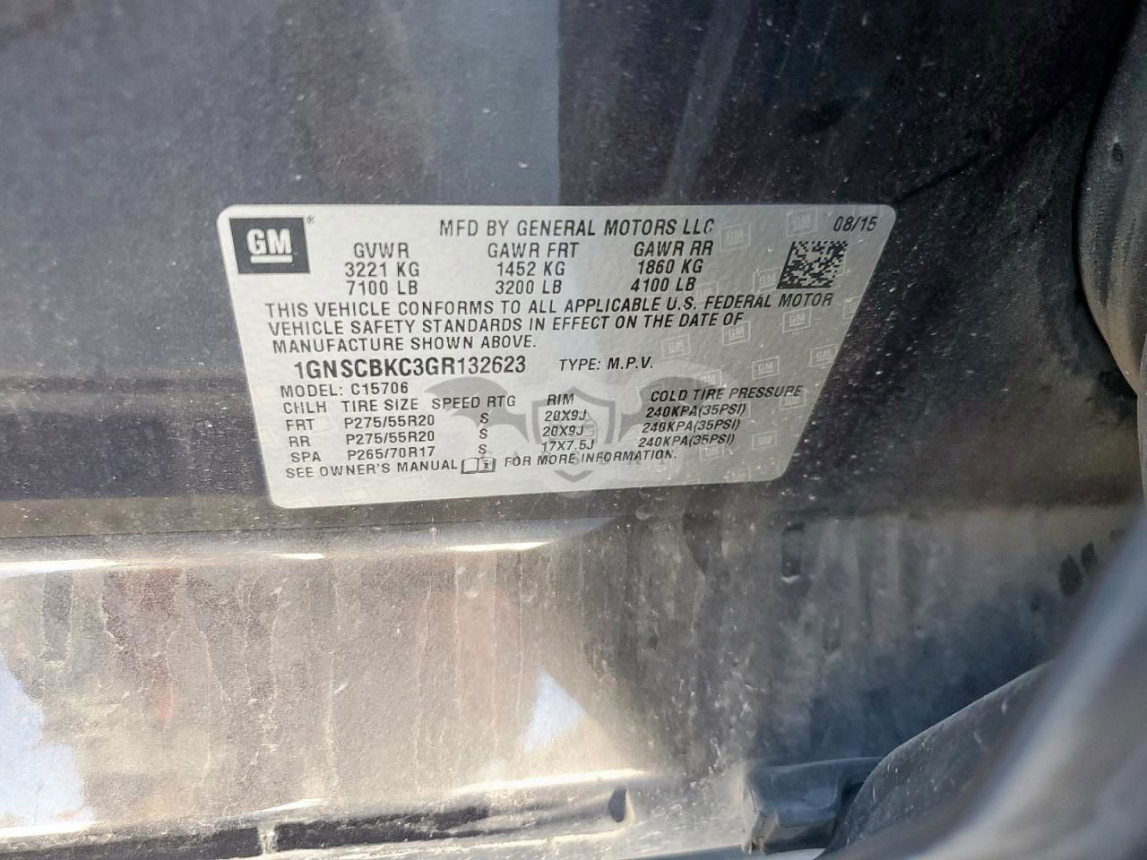 • VIN: 1GNSCBKC3GR132623