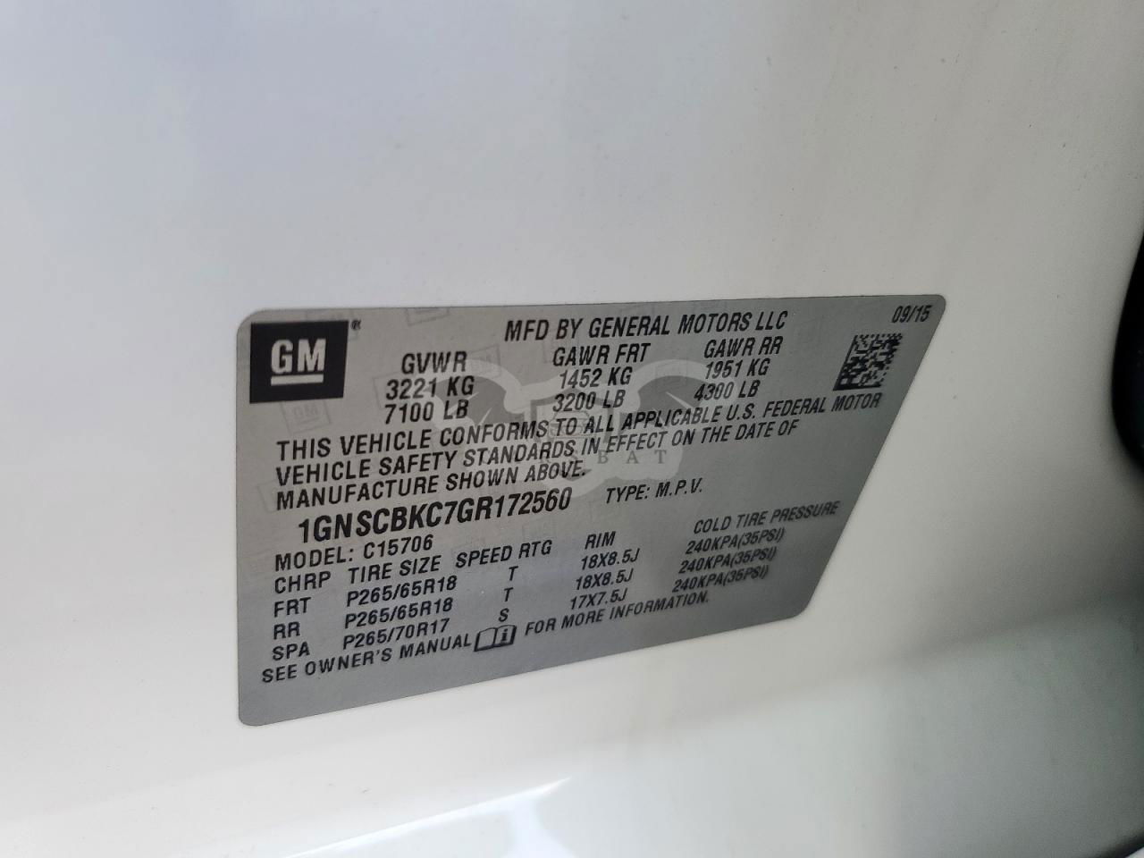 • VIN: 1GNSCBKC7GR172560
