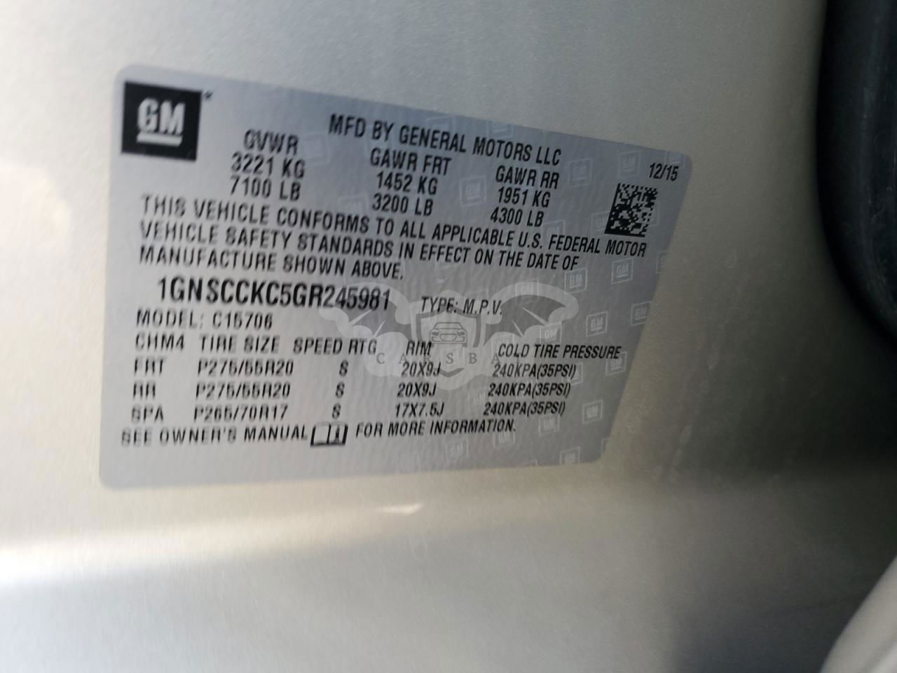 • VIN: 1GNSCCKC5GR245981