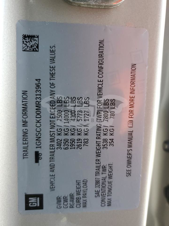 • VIN: 1GNSCCKD0MR313964