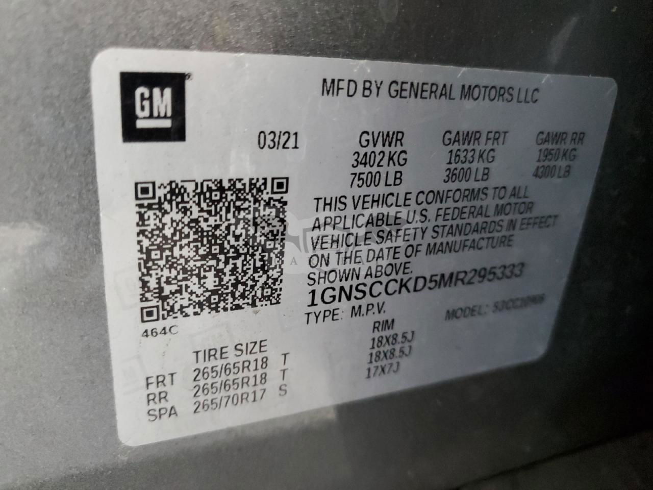 • VIN: 1GNSCCKD5MR295333