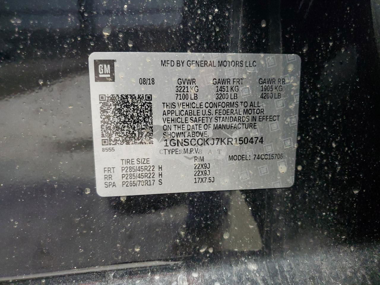• VIN: 1GNSCCKJ7KR150474