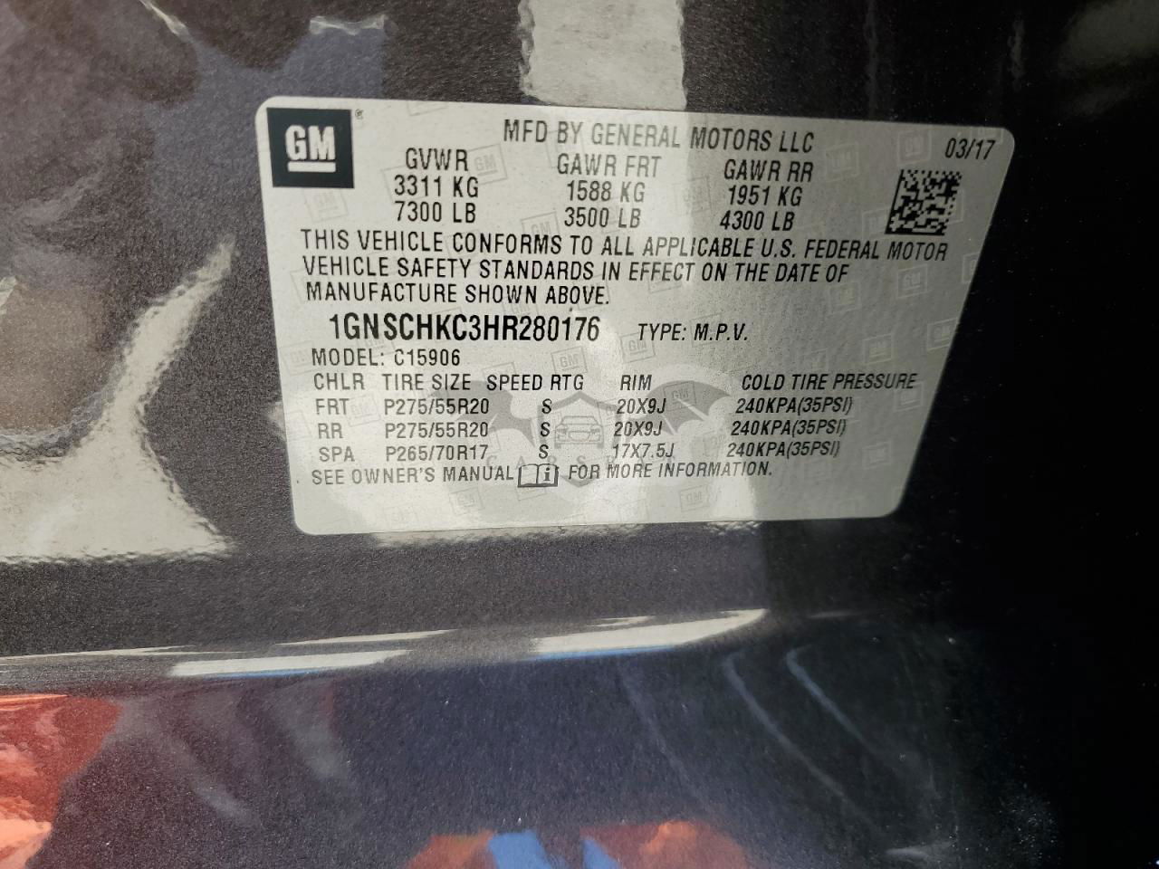 • VIN: 1GNSCHKC3HR280176